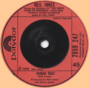 60年代からBONZO DOG BANDやソロ、そしてBEATELSのパロディバンドRUTLES等で活躍、その独特の諧謔精神や作曲術で多くの音楽ファンを唸らせてきたNEIL INNES。本盤は80年にリリースしたソロシングルで、前年リリースのアルバム『THE INNES BOOK OF RECORDS』からのカット。ルーツレゲエ的なノリを大胆に取り入れたレゲエ調作品。我が国では所謂"空耳"ネタとして人気が高い(?)そうな・・・
