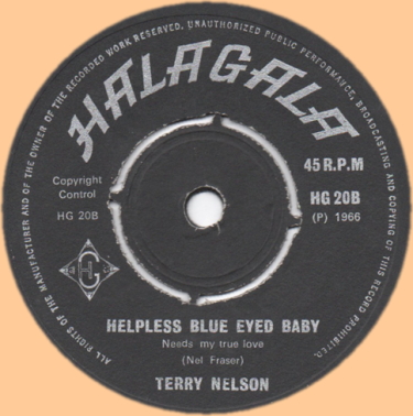 南米はガイアナ共和国出身の歌手/レーベルオーナーTERRY NELSONが自身のレーベルHALAGALAから67年にリリースした1枚。A面「I'll Shed More Tears」は米国の50年代のR&Bバラード調の作品、ここではB面「Helpless Blue Eyed Baby」を紹介。こちらは軽快でファンキーなビートに氏特有の浮遊感のある歌唱を乗せたファンキーソウル調。A面は時代錯誤感を感じさせるが、こちらはリリース年を考えれば比較的モダンな仕上がりだろうか。間奏のギターソロは本盤の数年前に盛り上がりを見せたR&Bビートっぽい感じで非常に興味深い。