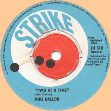 69年にYOUNG BLOODレーベルを設立、多種多様なタイプの音楽をリリースして成功したプロデューサーMIKI DALLON。氏自身も60年代半ばから作曲家/プロデューサーとしてだけでなく、歌手としても活動。65年にRCAからデビューし2枚のシングルをリリース、66年には新興レーベルSTRIKEに移籍し、2枚のシングルをリリースしており、ここで紹介するのは2枚目。A面「What Would Your Mama Say Now」はホンワカしたポップス、ここではそのB面「Two At A Time」を紹介。こちらはほどよく歯切れの良い、一風変わったリズムを配したポップス。作曲はDALLON自身、プロデュースはレーベルのオーナーLIONEL SEGALが手掛けた。ちなみに翌月にはレーベルメイトで人気歌手NEIL CHRISTIANが本作をA面曲として取り上げている。