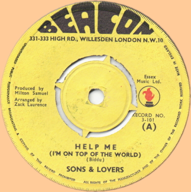 グルーヴィなソウル/ポップス音源を数多くリリースしていたレーベルBEACON。そのBEACONに68年から72年までの間に在籍、10枚以上のシングル盤をリリースしていた、ダービシャー出身のグループSONS & LOVERS。本盤はその記念すべき1枚目、デビュー盤。一発目だし、レーベルの特色も活かしてグルーヴィなサウンドで行くか?と思いきや、出てきた音は美しいストリングスを配した流麗なポップバラード。まぁ、いつの時代も手堅くヒットを狙いたい時はやはりバラードに尽きるのか。作曲は70年代に英国独自のソウルサウンドを確立、プロデューサーとして大成する、インド出身のBIDDU。本作はBIDDUの最初期の仕事という意味でも興味深い1枚かもしれない。アレンジは後にDJMレーベルでインスト・プロジェクト"MR.BLOE"で成功するZACK LAWRENCEが担当。
