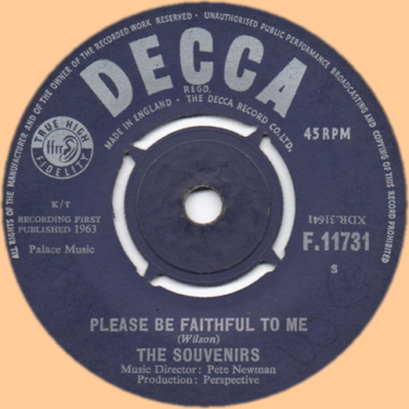 70年代にソウル/ファンク系グループHOT CHOCOLATEのメンバーとして大ブレイクすることになる、トリニダード出身の歌手/作曲家TONY WILSON。本盤は氏の実質レコードデビューとされるSOUVENIRSというグループ(おそらくコーラスグループ)の63年リリースのデビュー盤。A面「How Many Teardrops ?」は米国の人気ポップス歌手LOU CHRISTIEが同年にリリースした曲のカヴァー、ここではそのB面「Please Be Faithful To Me」を紹介。こちらはWILSONのペンによるオリジナル曲、ゆったりテンポに優しいメロディが乗った、米国のオールディーズあたりを意識したようなポップソング。コーラスワークはドゥーワップ好きにもアピールするか?