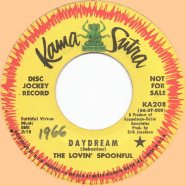 ヘタな(?)レア盤以上に探すのが難しい定番シングルのプロモ盤。このLOVIN' SPOONFULの全米総合2位を記録した、彼等の66年の代表曲のプロモ盤もそんな好例か。B面も同じ曲が収録されているのが米盤プロモらしい。