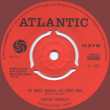 世代やジャンルを超えて愛される、ソウルの女王ARETHA FRANKLIN。本盤はCOLUMBIAからATLANTICに移籍しての第一弾シングル。A面「I Never Loved A Man (The Way I Love You)」は邦題「貴方だけを愛して」でお馴染みのソウルバラード。夫でマネージャーであるTED WHITEが作曲家RONNY SHANNONに依頼して出来上がった作品で、録音は南部のマッスルショールズにて行われた。そしてここで紹介するB面「Do Right Woman - Do Right Man」もまた彼女の代表曲の1つ。こちらは南部ソウルの人気作曲家DAN PENNとプロデューサーCHIPS MOMANの共作。録音途中で揉め事があり、怒ったARETHAとTEDが帰ってしまい、後日ニューヨークでARTHAを説得、ようやくのことで完成させたという1曲。ちなみに本盤は英国配給盤、米国では総合チャート9位、R&Bチャート首位の大ヒットを記録したが英国では全く売れなかった。