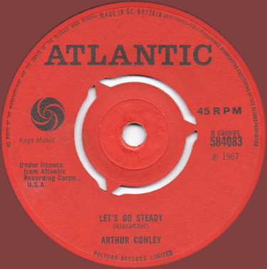 ジョージア州出身、アトランタで育ったソウル/R&B系歌手ARTHUR CONLEY。氏と言えばOTIS REDDINGがプロデュースした出世作にして60年代ソウル/R&B定番曲「Sweet Soul Music」。SAM COOKEの「Yeah Man」という曲を下敷きに作ったというスピード感あふれるパワフルなダンスナンバー。今回はそんな有名曲のB面「LetS Go Steady Again」を紹介。こちらもSAM COOKE関連の作品で、SAMが59年にシングルのB面曲としてリリースしたバラードをカヴァーしたもの。SAMの原曲は流麗なストリングスを導入したスタイリッシュで都会的なバラード作品だったが、こちらは完全に南部ソウルバラード路線に大変身。A面も良いがこちらのB面も是非聴いて欲しい。ARTHURの繊細で素朴なキャラクターが上手く反映された仕上がりになっている。ちなみに本盤は英国配給盤。英国でもチャート7位の大ヒットを記録、そんなヒットシングル故にレーベルのバリエーションも多く、本盤はタイトルに何故か"Again"が抜けたレーベルタイプ。