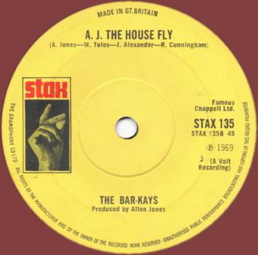 STAX/VOLTのスター歌手OTIS REDDINGの伴奏バンドとして登場するも、OTISと共に悲劇の事故に遭遇してしまった彼等。その後、奇跡的に生還したメンバー達を中心に再編成し見事復活。本盤はその後の69年にリリースした1枚。A面「Midnight Cowboy」は同名映画のテーマ曲をファンキーなソウル調アレンジでカヴァーしたもので、ここではそのB面「A.J. The House Fly」を紹介。こちらはメンバー達のペンによるオリジナル作品で、デビュー時からのファンキーなソウルインストのスタイルを踏襲しつつ、後に"BLACK ROCK"と自身たちのサウンドを掲げるように力強いロック的なエネルギーも感じさせる仕上がりとなっている。ちなみに本盤は英国配給盤で、本国の米国ではVOLTレーベルからのリリースで、英国ではEMI傘下の英STAXからの配給となっている。