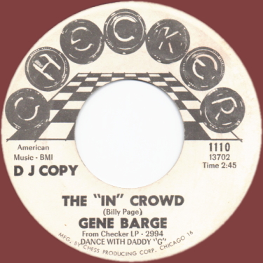 ヴァージニア州はノーフォーク出身のサックス奏者/作曲家/プロデューサーGENE BARGE。本盤は65年にシカゴのCHESSレーベルの傘下CHECKERからリリースした1枚。同年にリリースしたアルバム『DANCE WITH DADDY "G"』からのカットで、人気ポップ/R&B歌手DOBBIE GREYが同年に大ヒットさせた、60年代のR&B定番曲としても知られる「The "In" Crowd」をカヴァーしたもの。原曲に比較的忠実なアレンジに乗ってBARGEが気持ち良くサックスを吹く、洒落たインストヴァージョンに仕上がっている。